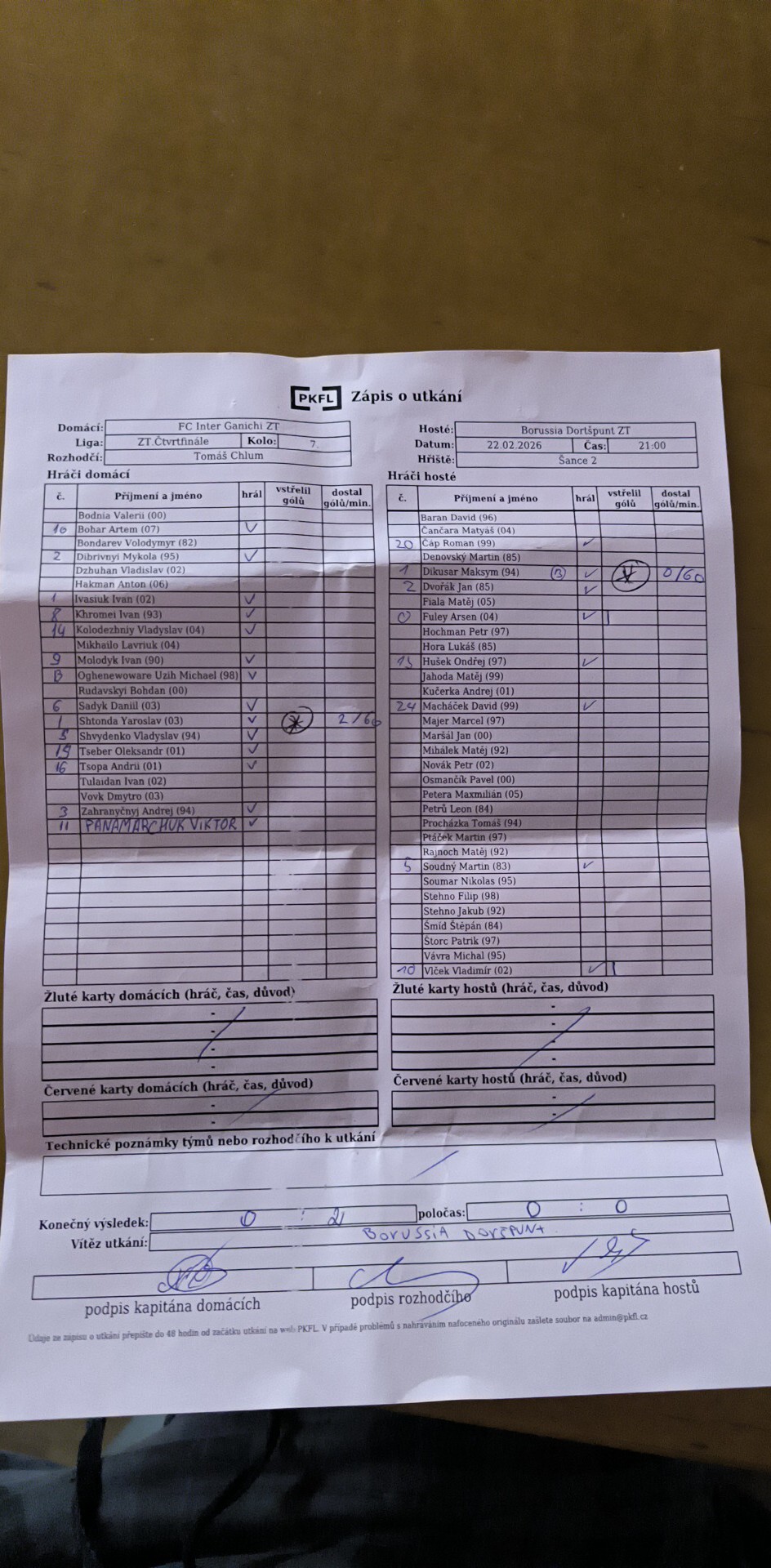 Zápis o utkání.